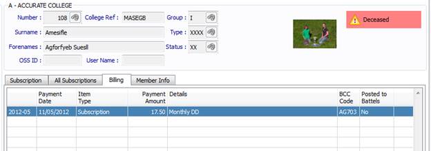 the amount to be posted during this batch, and update the members ‘Next Bill